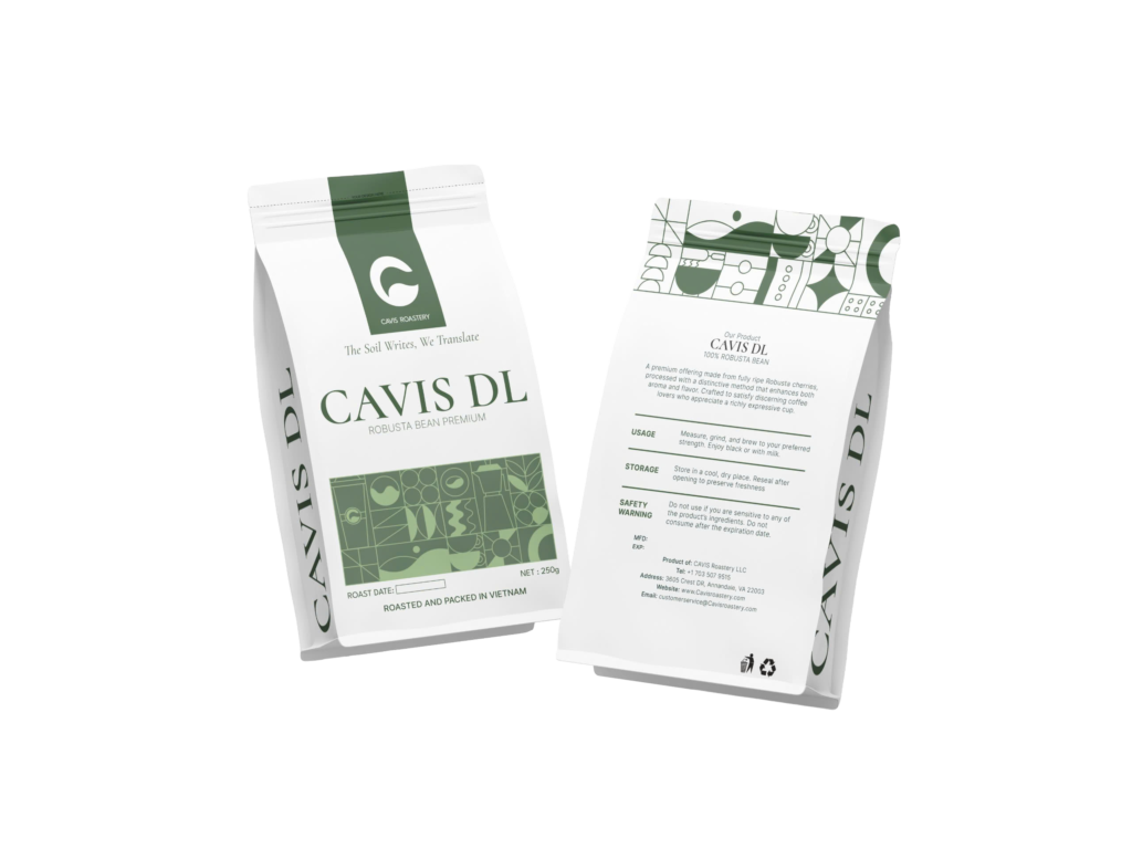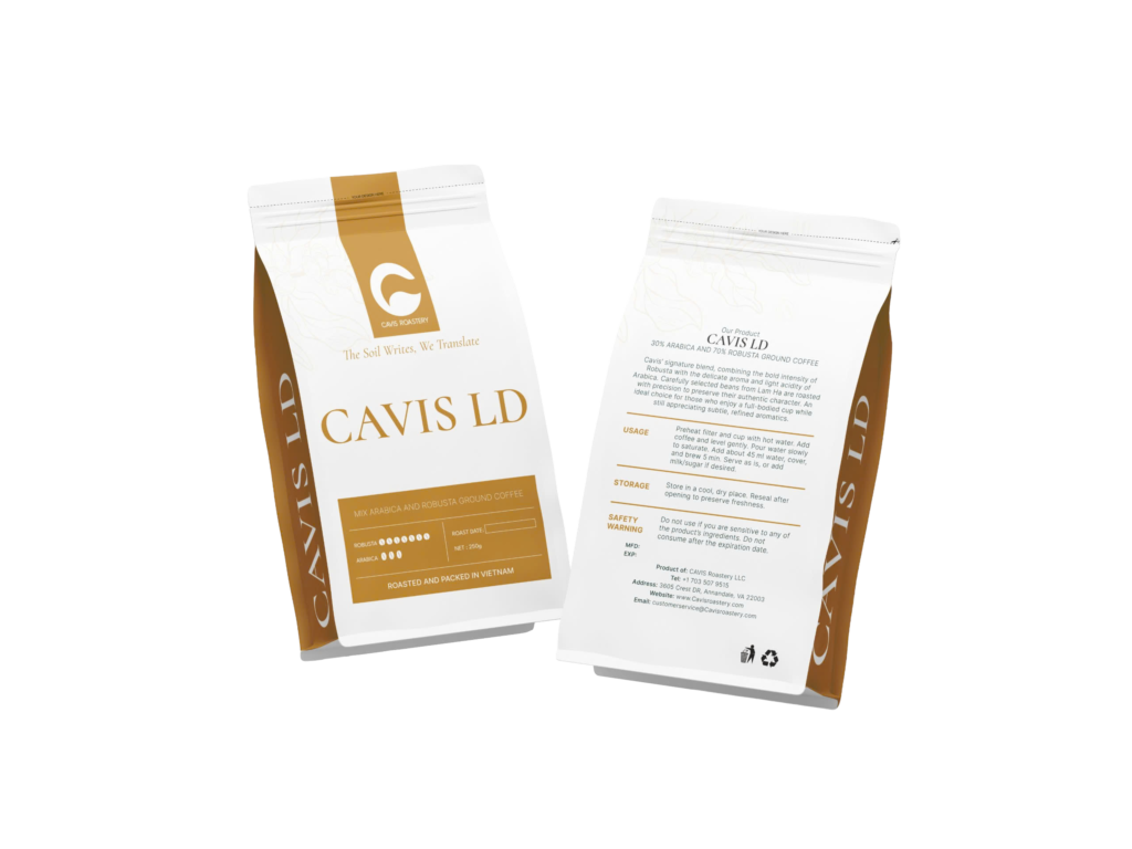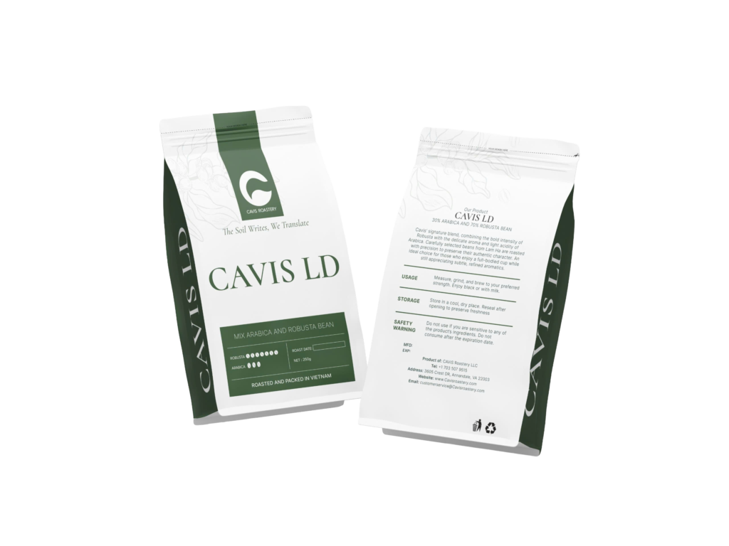 A Sensory Journey – From our signature CAVIS DL – bold, energetic Robusta – to the harmoniously balanced CAVIS LD, we invite you to explore the diverse dimensions of Vietnamese agriculture. At Cavis, we live by the philosophy: “The soil writes, we translate.” We preserve the raw identity of the earth and carry its story forward, delivering a complete and elegantly refined coffee experience in every moment.